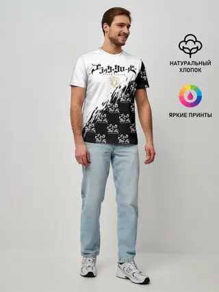 Мужская базовая футболка / Чёрный клевер черно-белый разрыв