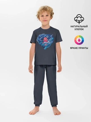 Мужская футболка оверсайз / Ocean heart. Totoro