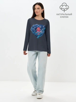 Лонгслив женский. Хлопок / Ocean heart. Totoro