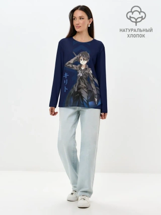 Лонгслив женский. Хлопок / Черный мечник Кирито