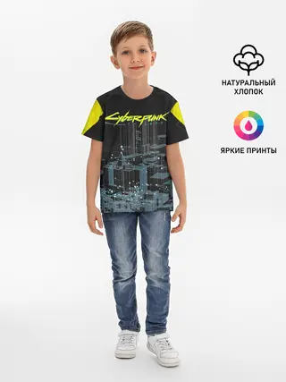 Детская базовая футболка / Город CYBERPUNK 2077