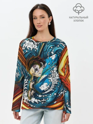 Лонгслив женский. Хлопок / Танджиро Камадо Клинок демонов