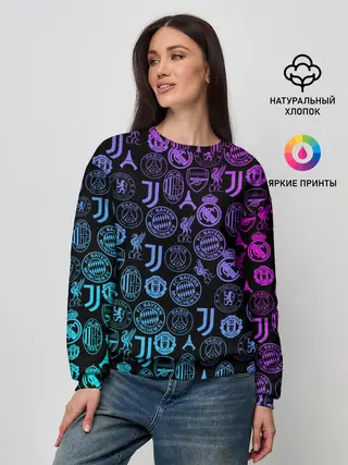 Женский свитшот / ЛОГО ФУТБОЛЬНЫХ КОМАНД НЕОН