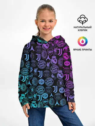 Детское худи / ЛОГО ФУТБОЛЬНЫХ КОМАНД НЕОН