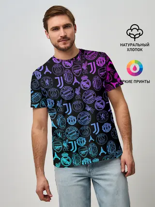 Мужская базовая футболка / ЛОГО ФУТБОЛЬНЫХ КОМАНД НЕОН