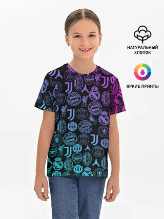 Детская базовая футболка / ЛОГО ФУТБОЛЬНЫХ КОМАНД НЕОН