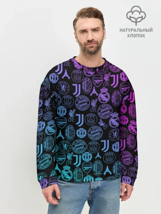 Мужской свитшот базовый / ЛОГО ФУТБОЛЬНЫХ КОМАНД НЕОН