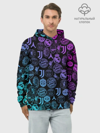 Худи мужской база хлопок / ЛОГО ФУТБОЛЬНЫХ КОМАНД НЕОН