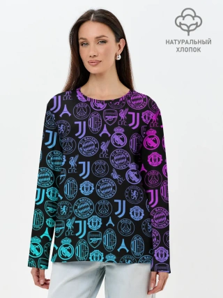 Лонгслив женский. Хлопок / ЛОГО ФУТБОЛЬНЫХ КОМАНД НЕОН