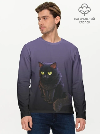 Мужской лонгслив базовый / черный кот на фиолетовом