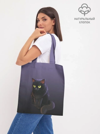 Шоппер база / черный кот на фиолетовом