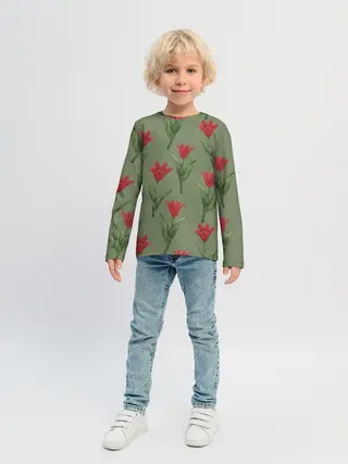 Детская базовая футболка / Красные тюльпаны на зеленом