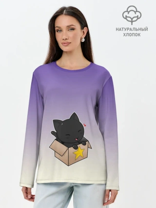 Лонгслив женский. Хлопок / черный котенок в коробке