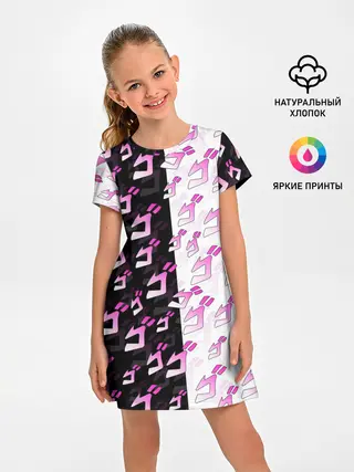 Детская базовая футболка / Розовые джоджо на чернобелом