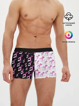 Мужские трусы боксеры / Розовые джоджо на чернобелом