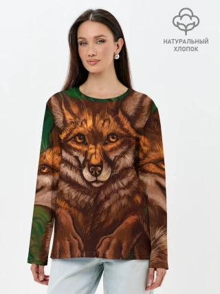 Лонгслив женский. Хлопок / Лисы