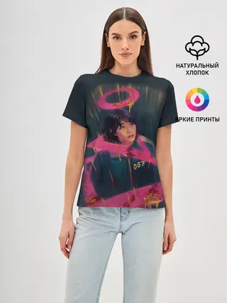 Женская футболка оверсайз / УЧАСТНИК 067 | ИГРА В КАЛЬМАРА | SQUID GAME