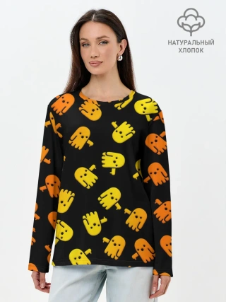 Лонгслив женский. Хлопок / BOO! ПРИЗРАК, ПРИВЕДЕНИЕ ХЕЛЛОУИН ОРАНЖЕВЫЙ