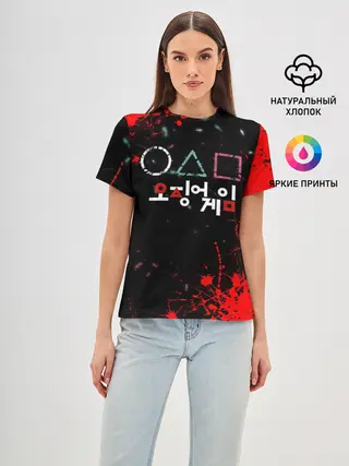 Женская базовая футболка / Игра в кальмара брызги крови