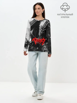 Лонгслив женский. Хлопок / BERSERK Ч/Б | БЕРСЕРК