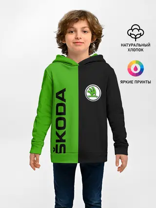 Мужская футболка оверсайз / SKODA черно-зеленый