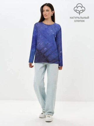 Лонгслив женский. Хлопок / Синие акварельные мазки