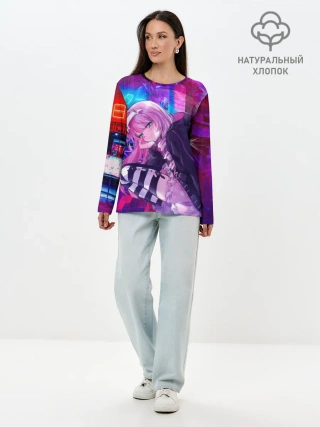 Лонгслив женский. Хлопок / Zero Two в неоновом городе