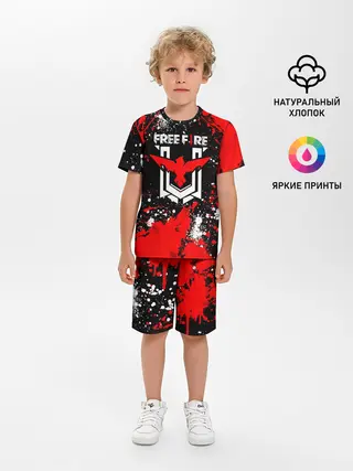 Детская пижама с шортами / Free Fire: Брызги и капли красок.