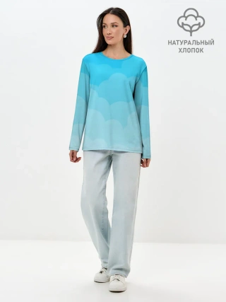 Лонгслив женский. Хлопок / Голубые облака
