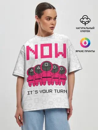 Женская футболка оверсайз / Теперь твоя очередь.