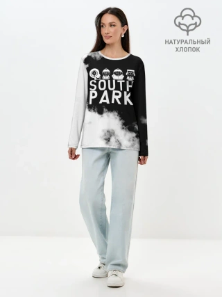 Лонгслив женский. Хлопок / Все пацаны на черном фоне Южный Парк