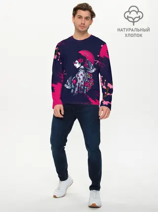 Мужской лонгслив базовый / ДЕВУШКА В КИМОНО И ПТИЦАМИ