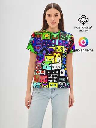 Женская базовая футболка / GEOMETRY DASH ВСЕ СКИНЫ