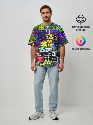 Мужская футболка оверсайз / GEOMETRY DASH ВСЕ СКИНЫ