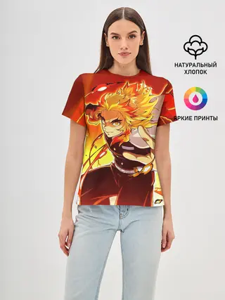 Женская базовая футболка / Ренгоку Кёджуро, Клинок рассекающий демонов