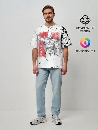 Мужская футболка оверсайз / One Punch-Man черные брызги Сайтама