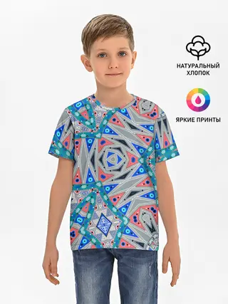Детская пижама с брюками / Серо-синий абстрактный узор