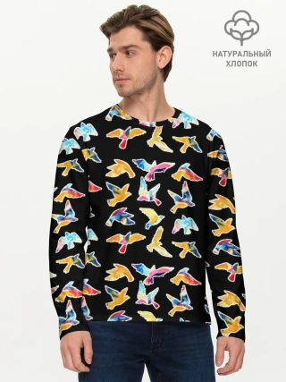 Мужской лонгслив базовый / парящие акварельные птицы