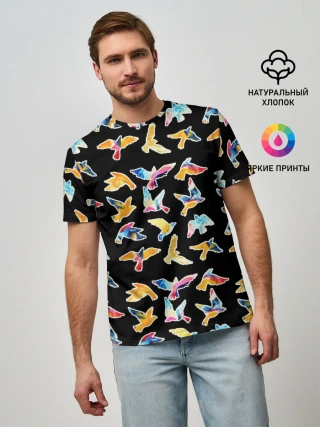 Мужская базовая футболка / парящие акварельные птицы