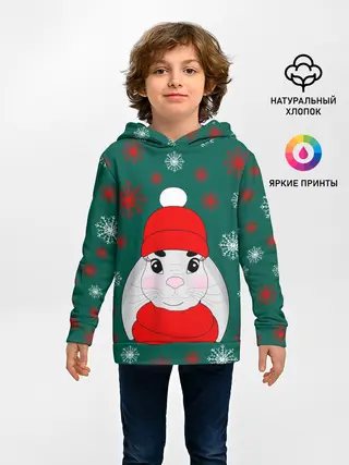 Мужской лонгслив базовый / зимний кролик и снежинки