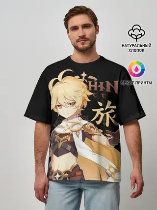 Мужская футболка оверсайз / Путешественник / Genshin Impact