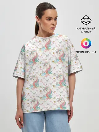 Женская футболка оверсайз / Единороги паттерном