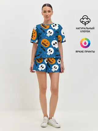 Женская пижама с шортами / ЧЕРЕПА И ТЫКВЫ | HALLOWEEN