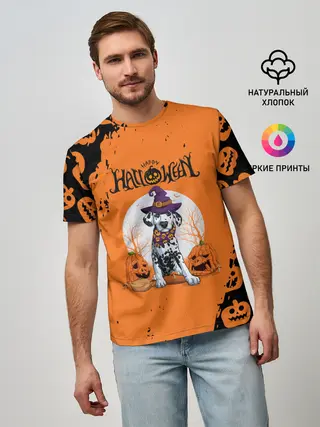 Мужская базовая футболка / Далматинец в шляпе | Хэллоуин