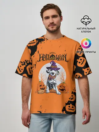 Мужская футболка оверсайз / Далматинец в шляпе | Хэллоуин