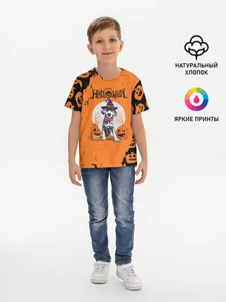 Детская базовая футболка / Далматинец в шляпе | Хэллоуин