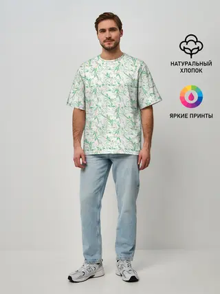 Мужская футболка оверсайз / Весенние узоры из листьев