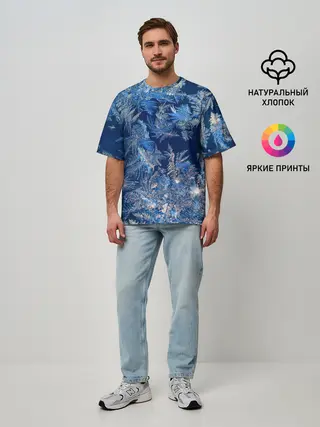 Мужская футболка оверсайз / Снежинки макро snowflakes macro