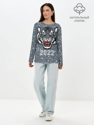 Лонгслив женский. Хлопок / Водяной тигр 2022