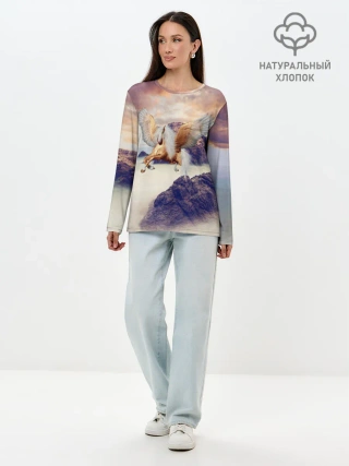 Лонгслив женский. Хлопок / Sea Sunset Horse